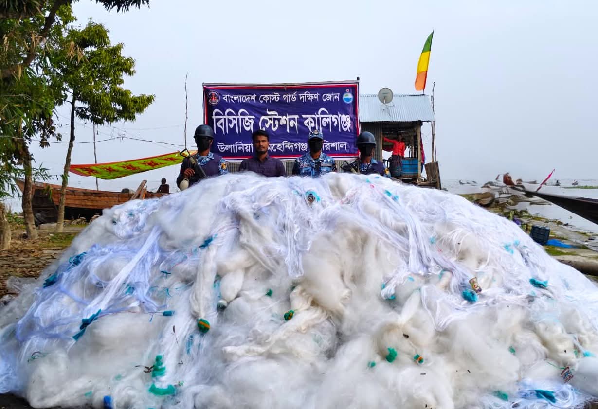 বরিশালের মেহেন্দিগঞ্জে প্রায় ৩১ কোটি ৫০ লক্ষ টাকা মূল্যের বিপুল পরিমাণ নিষিদ্ধ কারেন্ট জাল জব্দ করেছে বাংলাদেশ কোস্ট গার্ড।