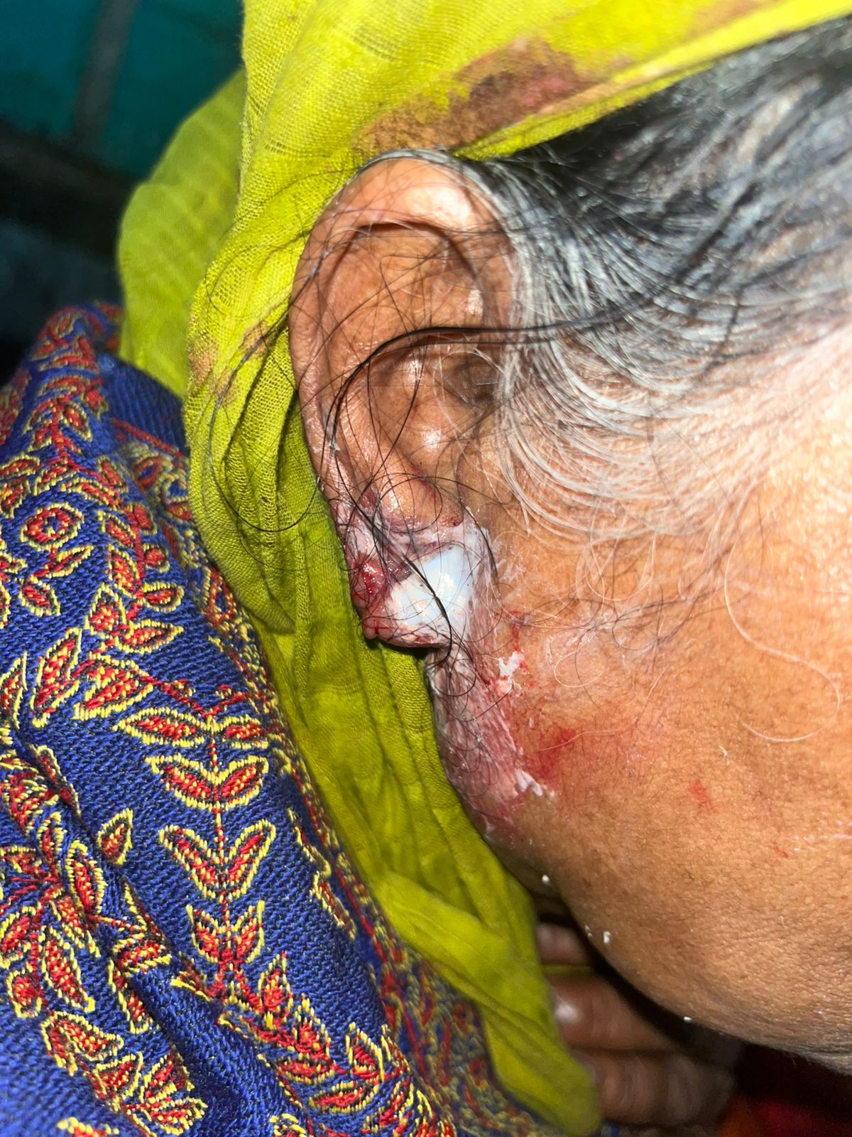 গৃহপরিচালিকার কান ছিঁড়ে রক্তাক্ত।