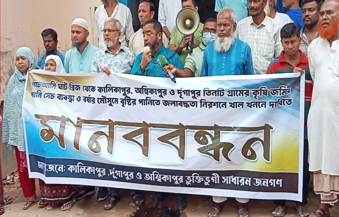 বক্তাদের অভিযোগ, পাঁচনি ঘাট ব্রিজ সংলগ্ন এই খালটি দীর্ঘ দিন ধরে ভরাট হয়ে থাকায় সেচ ব্যবস্থা পুরোপুরি ভেঙে পড়েছে। শুষ্ক মৌসুমে পানি সংকটে চাষাবাদ ব্যাহত হচ্ছে, আর বর্ষায় পানি নিষ্কাশন না হওয়ায় সৃষ্টি হচ্ছে দীর্ঘস্থায়ী জলাবদ্ধতা। এতে ফসলের ব্যাপক ক্ষতির পাশাপাশি জনদুর্ভোগ চরমে পৌঁছেছে। দ্রুত খালটি খনন করে কৃষি ও কৃষকের ভাগ্য উন্নয়নে প্রশাসনের কার্যকর হস্তক্ষেপ কামনা করেছেন স্থানীয়রা।
